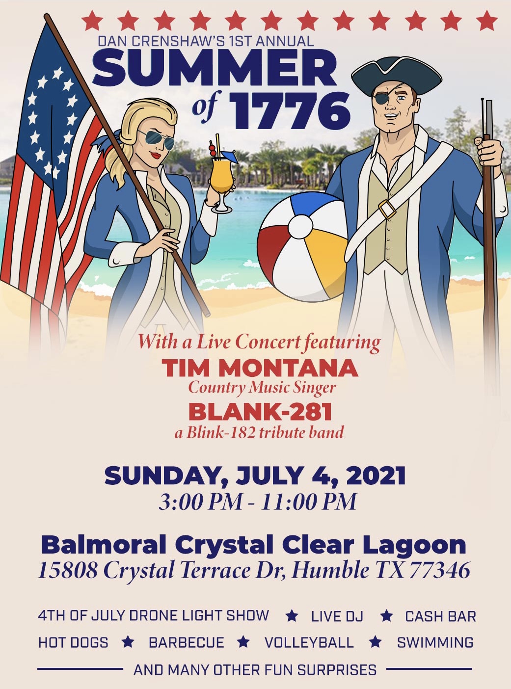 Early access to Dan Crenshaw’s 1st Annual Summer of 1776. Purchase tickets and exclusive VIP Packages before they go on sale to the general public.